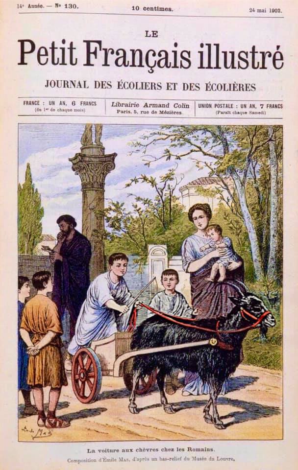 If the purpose of the carved marble relief was to preserve the memory of the young Roman, his family, and his goat cart, they were successful. In 1902, a French youth magazine published an issue featuring an illustration of Marcus Cornelius and his goat chariot on the cover. Simply titled: “The goat cart in Rome” it showed young readers that children in Ancient Rome weren’t so different, and far removed in antiquity, after all! Why, the youngsters of the ancient world had appreciated a good goat cart just as much as they did.