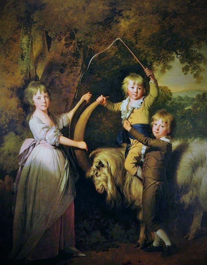 Three Children of Richard Arkwright with their Goat, painted by Joseph Wright Of Derby. Currently in the collection of The Tate Gallery, in London, UK.