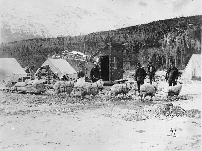Teams of Angora goats helped bring supplies to remote locations, during the Alaska gold rush. With their sure feet and thick mohair coats, these draft goats were right at home, in the rugged terrain around the Klondike.